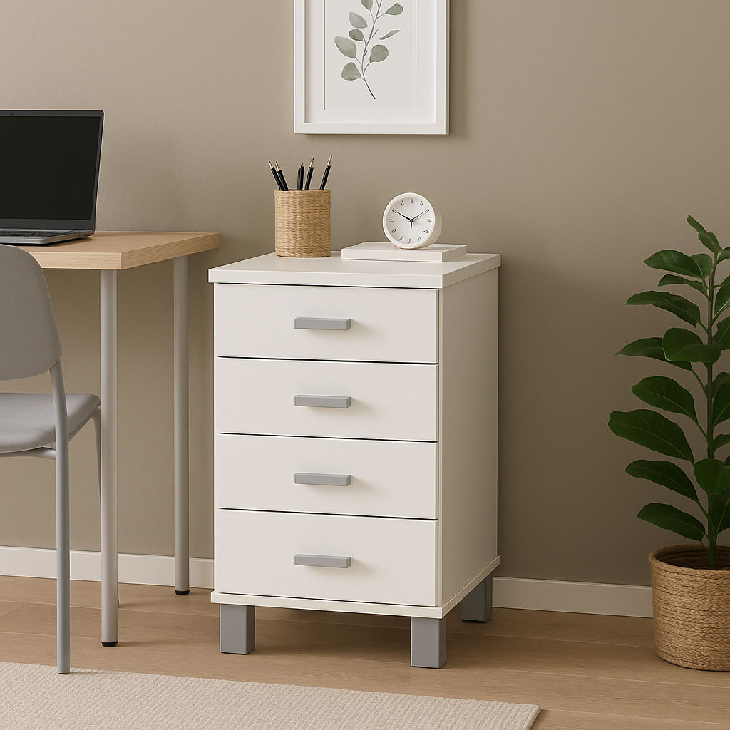 Korkealaatuisen Fondi-tuotesarjan laatikosto neljällä vetolaatikolla.